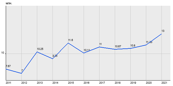 7.67 млн. руб, а в 2021 году - 13 млн. руб. Таким образом, средняя стоимость двухкомнатных квартир в районе "Сокольники" за