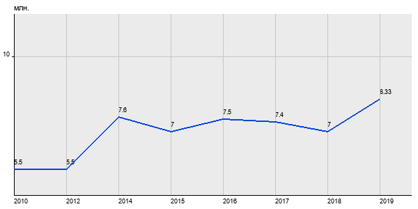 5.5 млн. руб, а в 2019 году - 8.33 млн. руб. Таким образом, средняя стоимость трёхкомнатных квартир в районе "Марьино" за