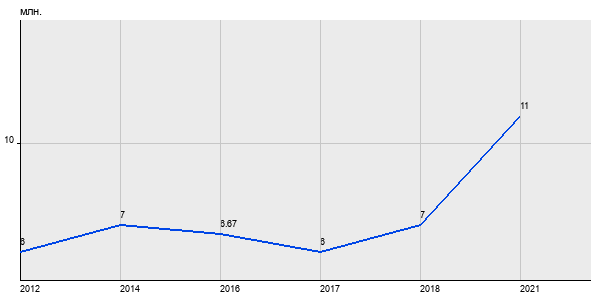 6 млн. руб, а в 2021 году - 11 млн. руб. Таким образом, средняя стоимость однокомнатных квартир в районе "Преображенское" за
