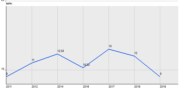 9 млн. руб, а в 2019 году - 9 млн. руб. Таким образом, средняя стоимость двухкомнатных квартир в районе "" за
