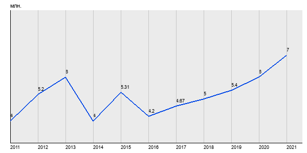 4 млн. руб, а в 2021 году - 7 млн. руб. Таким образом, средняя стоимость однокомнатных квартир в районе "Вешняки" за