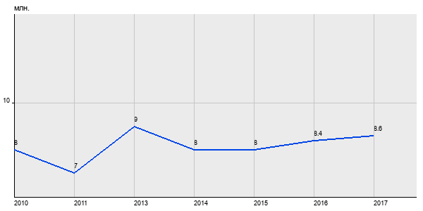 8 млн. руб, а в 2017 году - 8.6 млн. руб. Таким образом, средняя стоимость однокомнатных квартир в районе "" за