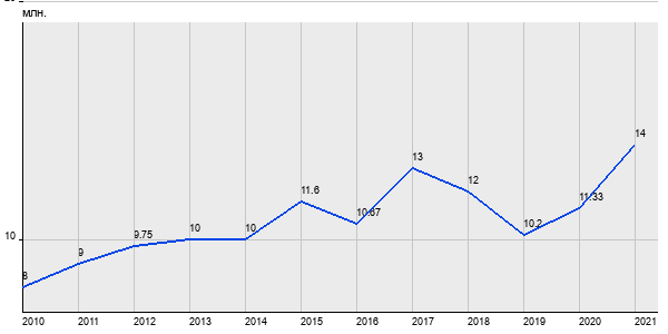 8 млн. руб, а в 2021 году - 14 млн. руб. Таким образом, средняя стоимость двухкомнатных квартир в районе "" за