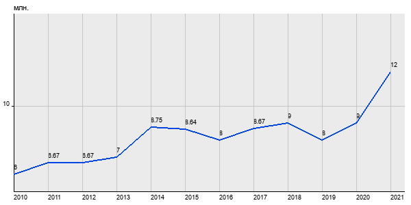6 млн. руб, а в 2021 году - 12 млн. руб. Таким образом, средняя стоимость однокомнатных квартир в районе "" за