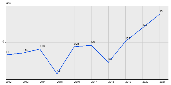 7.8 млн. руб, а в 2021 году - 15 млн. руб. Таким образом, средняя стоимость двухкомнатных квартир в районе "Тимирязевский" за