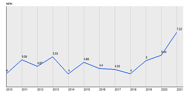4 млн. руб, а в 2021 году - 7.22 млн. руб. Таким образом, средняя стоимость однокомнатных квартир в районе "Можайский" за