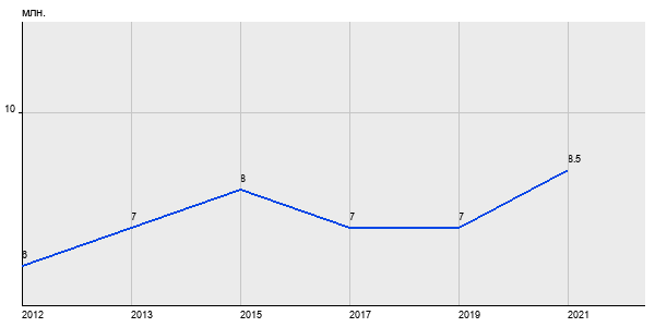 6 млн. руб, а в 2021 году - 8.5 млн. руб. Таким образом, средняя стоимость однокомнатных квартир в районе "Отрадное" за