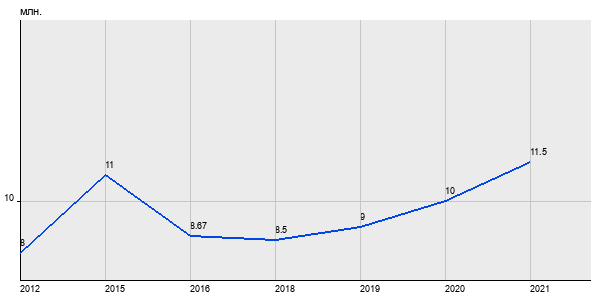 8 млн. руб, а в 2021 году - 11.5 млн. руб. Таким образом, средняя стоимость двухкомнатных квартир в районе "Ясенево" за
