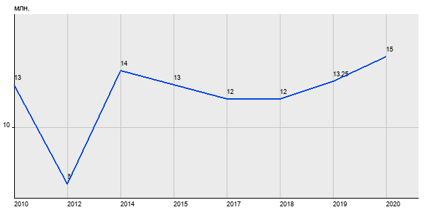 13 млн. руб, а в 2020 году - 15 млн. руб. Таким образом, средняя стоимость двухкомнатных квартир в районе "Аэропорт" за