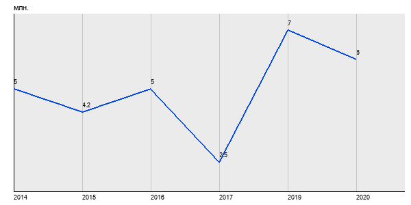 5 млн. руб, а в 2020 году - 6 млн. руб. Таким образом, средняя стоимость однокомнатных квартир в районе "Чертаново Центральное" за