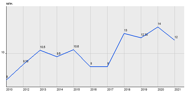 6 млн. руб, а в 2021 году - 12 млн. руб. Таким образом, средняя стоимость трёхкомнатных квартир в районе "Бабушкинский" за