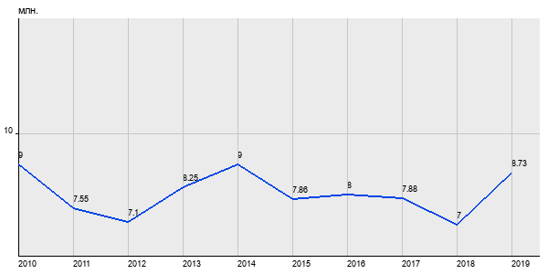 9 млн. руб, а в 2019 году - 8.73 млн. руб. Таким образом, средняя стоимость однокомнатных квартир в районе "Зюзино" за
