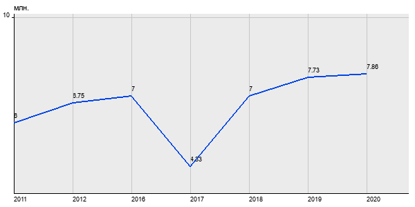 6 млн. руб, а в 2020 году - 7.86 млн. руб. Таким образом, средняя стоимость однокомнатных квартир в районе "Савёловский" за