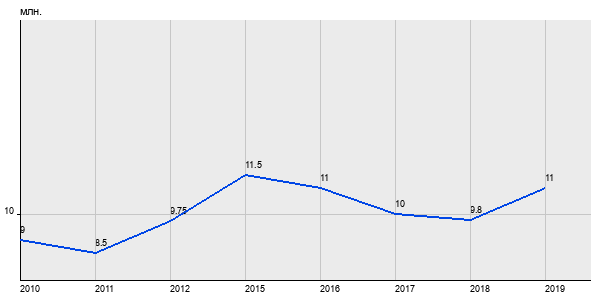 9 млн. руб, а в 2019 году - 11 млн. руб. Таким образом, средняя стоимость трёхкомнатных квартир в районе "Строгино" за