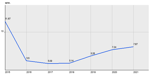 11.67 млн. руб, а в 2021 году - 7.67 млн. руб. Таким образом, средняя стоимость однокомнатных квартир в районе "Можайский" за