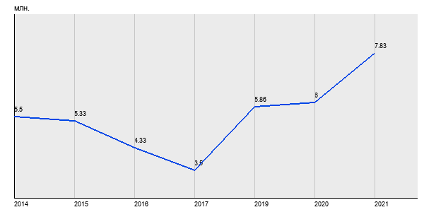 5.5 млн. руб, а в 2021 году - 7.83 млн. руб. Таким образом, средняя стоимость однокомнатных квартир в районе "Ясенево" за