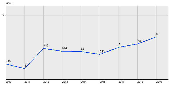 5.43 млн. руб, а в 2019 году - 8 млн. руб. Таким образом, средняя стоимость однокомнатных квартир в районе "Дорогомилово" за