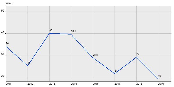 34 млн. руб, а в 2019 году - 19 млн. руб. Таким образом, средняя стоимость трёхкомнатных квартир в районе "" за