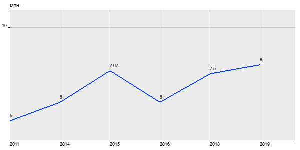 5 млн. руб, а в 2019 году - 8 млн. руб. Таким образом, средняя стоимость двухкомнатных квартир в районе "Южное Тушино" за