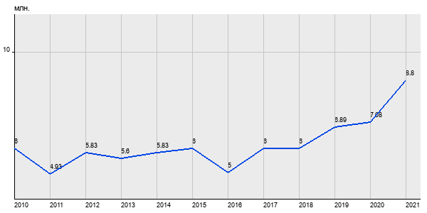 6 млн. руб, а в 2021 году - 8.8 млн. руб. Таким образом, средняя стоимость однокомнатных квартир в районе "Филёвский Парк" за