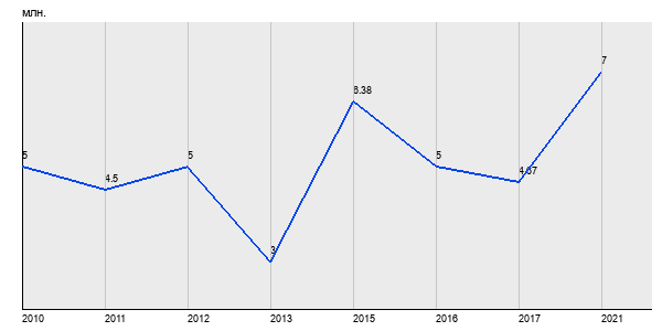 5 млн. руб, а в 2021 году - 7 млн. руб. Таким образом, средняя стоимость однокомнатных квартир в районе "Перово" за