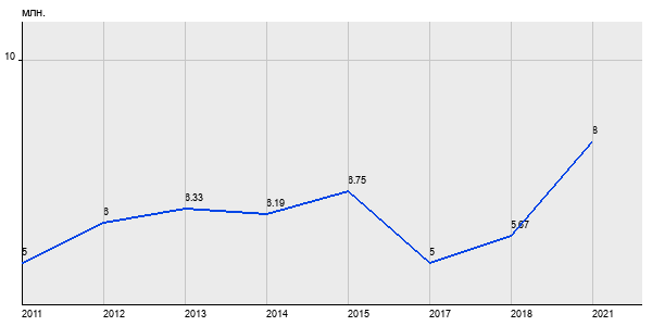 5 млн. руб, а в 2021 году - 8 млн. руб. Таким образом, средняя стоимость двухкомнатных квартир в районе "Измайлово" за