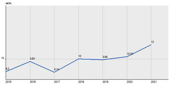 8.2 млн. руб, а в 2021 году - 12 млн. руб. Таким образом, средняя стоимость однокомнатных квартир в районе "Кунцево" за