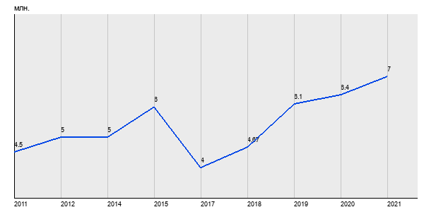 4.5 млн. руб, а в 2021 году - 7 млн. руб. Таким образом, средняя стоимость однокомнатных квартир в районе "" за