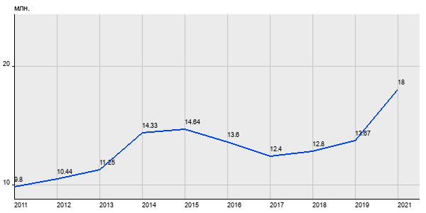 9.8 млн. руб, а в 2021 году - 18 млн. руб. Таким образом, средняя стоимость трёхкомнатных квартир в районе "Чертаново Южное" за