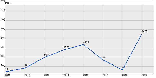 44 млн. руб, а в 2020 году - 84.87 млн. руб. Таким образом, средняя стоимость четырёхкомнатных квартир в районе "Ломоносовский" за