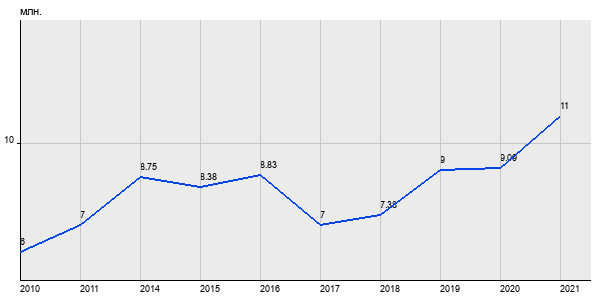 6 млн. руб, а в 2021 году - 11 млн. руб. Таким образом, средняя стоимость однокомнатных квартир в районе "Черёмушки" за