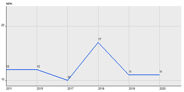 12 млн. руб, а в 2020 году - 11 млн. руб. Таким образом, средняя стоимость четырёхкомнатных квартир в районе "Южное Бутово" за