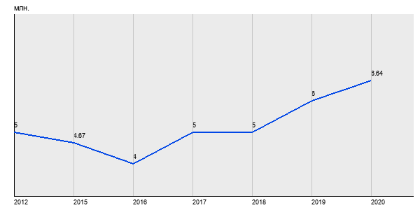 5 млн. руб, а в 2020 году - 6.64 млн. руб. Таким образом, средняя стоимость однокомнатных квартир в районе "Бибирево" за