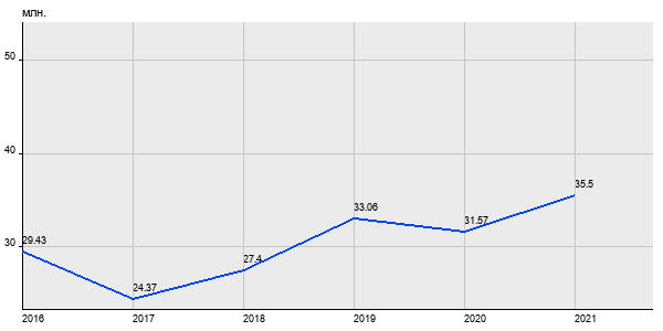 29.43 млн. руб, а в 2021 году - 35.5 млн. руб. Таким образом, средняя стоимость двухкомнатных квартир в районе "Хамовники" за