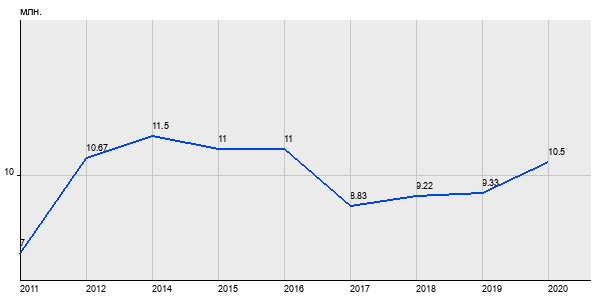 7 млн. руб, а в 2020 году - 10.5 млн. руб. Таким образом, средняя стоимость однокомнатных квартир в районе "Басманный" за