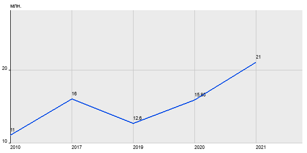 11 млн. руб, а в 2021 году - 21 млн. руб. Таким образом, средняя стоимость четырёхкомнатных квартир в районе "Новогиреево" за