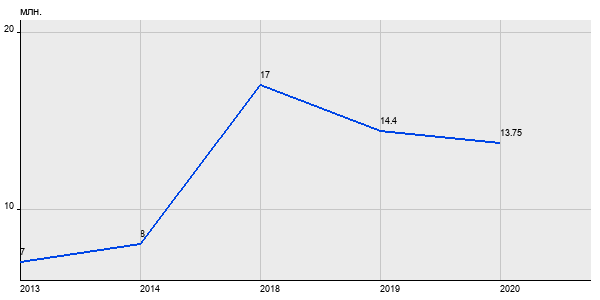 7 млн. руб, а в 2020 году - 13.75 млн. руб. Таким образом, средняя стоимость однокомнатных квартир в районе "Басманный" за