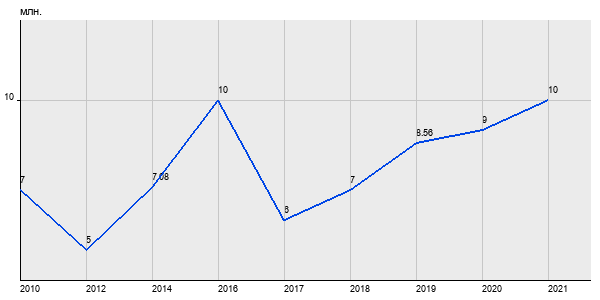 7 млн. руб, а в 2021 году - 10 млн. руб. Таким образом, средняя стоимость однокомнатных квартир в районе "Пресненский" за