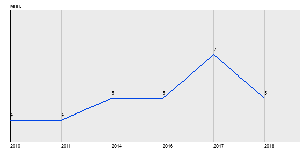 4 млн. руб, а в 2018 году - 5 млн. руб. Таким образом, средняя стоимость однокомнатных квартир в районе "Левобережный" за