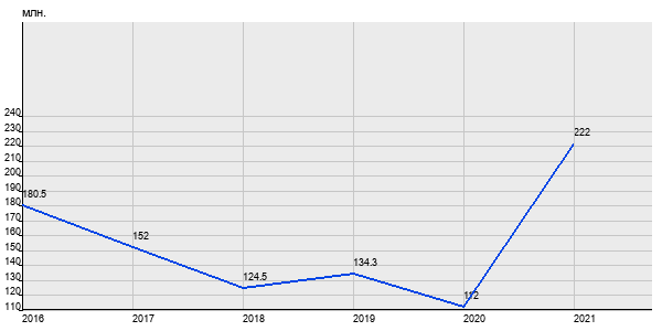 180.5 млн. руб, а в 2021 году - 222 млн. руб. Таким образом, средняя стоимость четырёхкомнатных квартир в районе "Пресненский" за