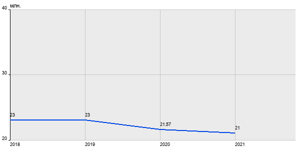 23 млн. руб, а в 2021 году - 21 млн. руб. Таким образом, средняя стоимость четырёхкомнатных квартир в районе "Обручевский" за