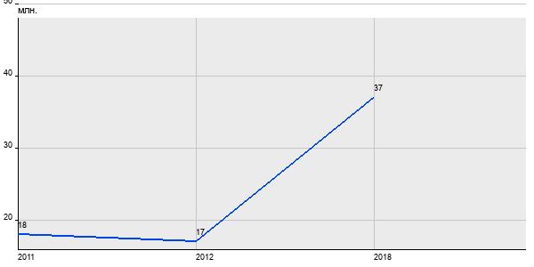 18 млн. руб, а в 2018 году - 37 млн. руб. Таким образом, средняя стоимость трёхкомнатных квартир в районе "" за