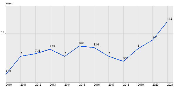 4.63 млн. руб, а в 2021 году - 11.5 млн. руб. Таким образом, средняя стоимость однокомнатных квартир в районе "Басманный" за