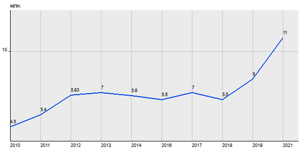 4.5 млн. руб, а в 2021 году - 11 млн. руб. Таким образом, средняя стоимость однокомнатных квартир в районе "Пресненский" за