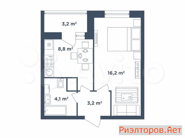 Общая площадь 38.0 м