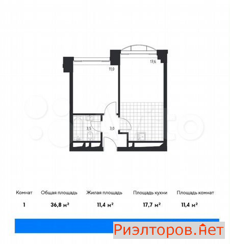 Общая площадь 36.8 м