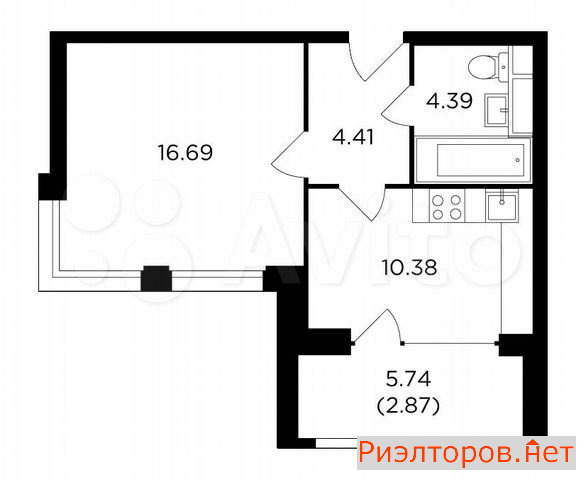 Общая площадь 41.1 м