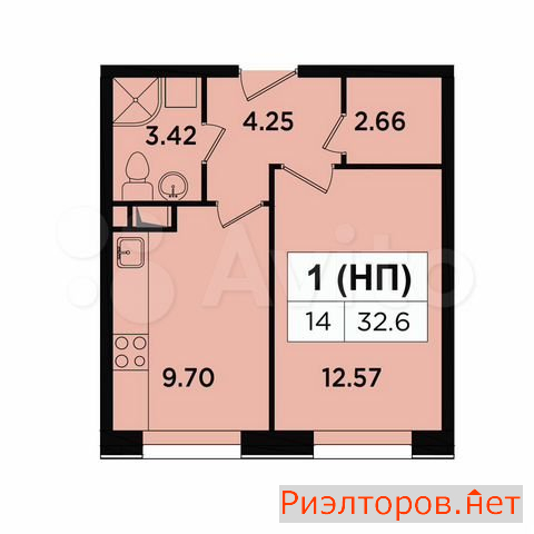 Общая площадь 32.6 м