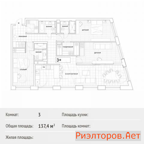 Общая площадь 134.0 м