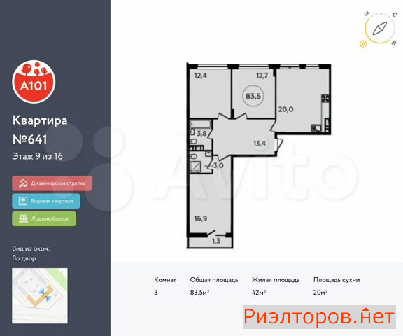 Общая площадь 84.0 м